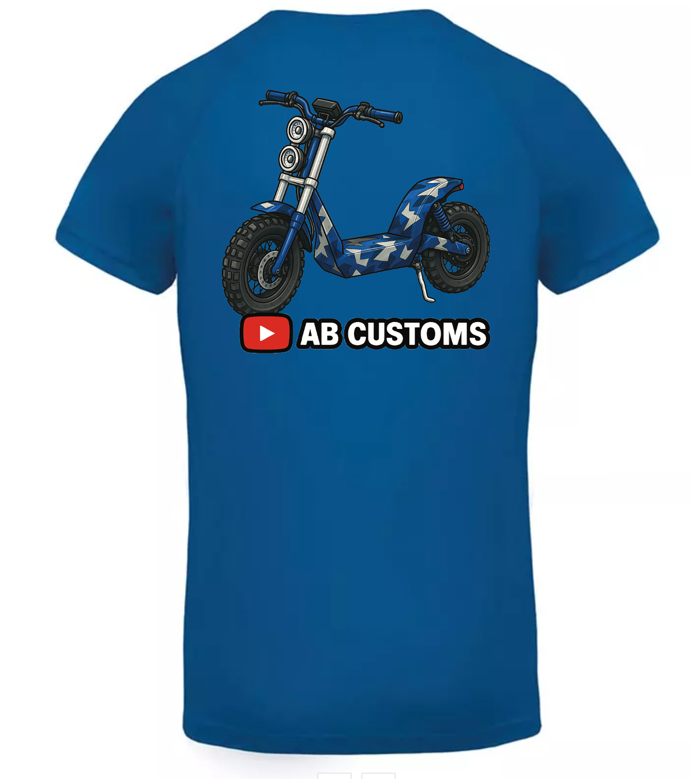 Vet T-shirt met voorop het AB-Customs logo en achterop een voertuig naar keuze
